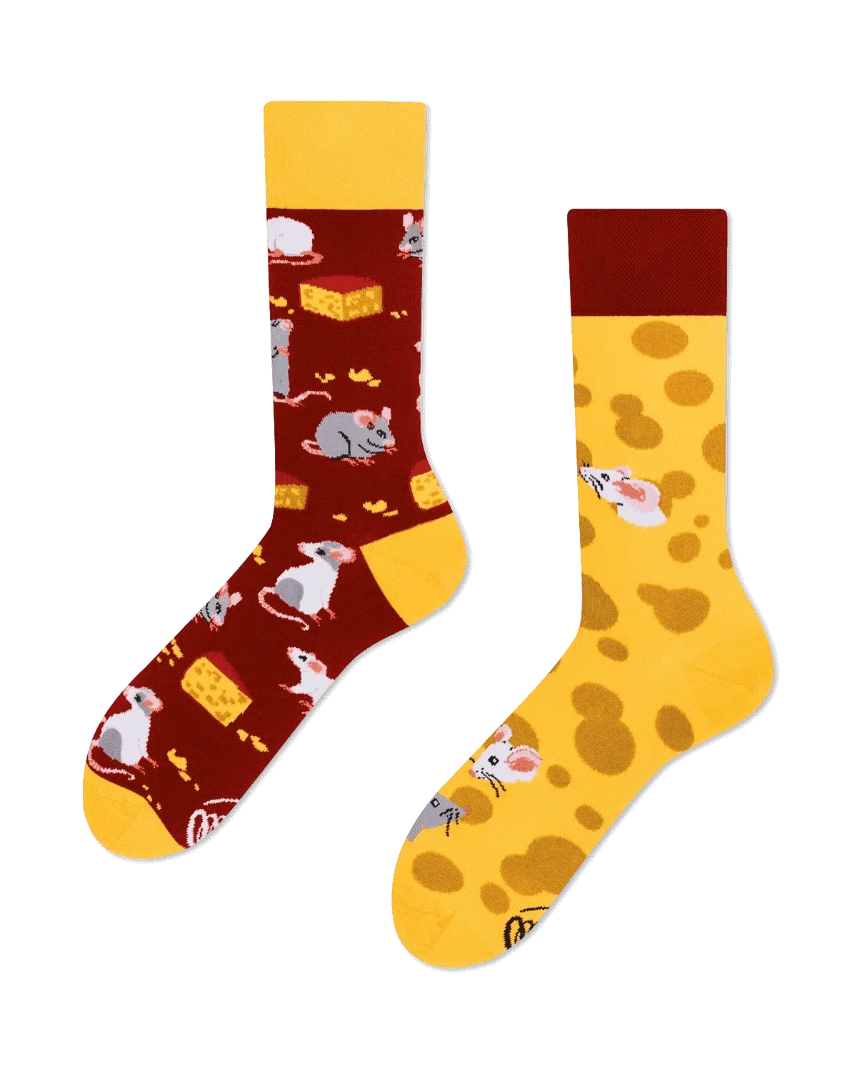 Ces chaussettes originales, dépareillées et mixtes raviront les fromage et de souris.