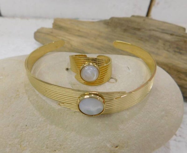 Bracelet rigide en acier inoxydable, avec de la nacre.