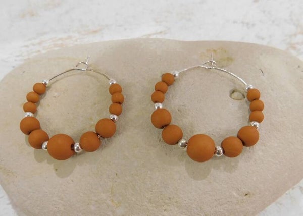 Créoles réalisées avec des perles acryliques mat et des perles en métal doré ou argenté.