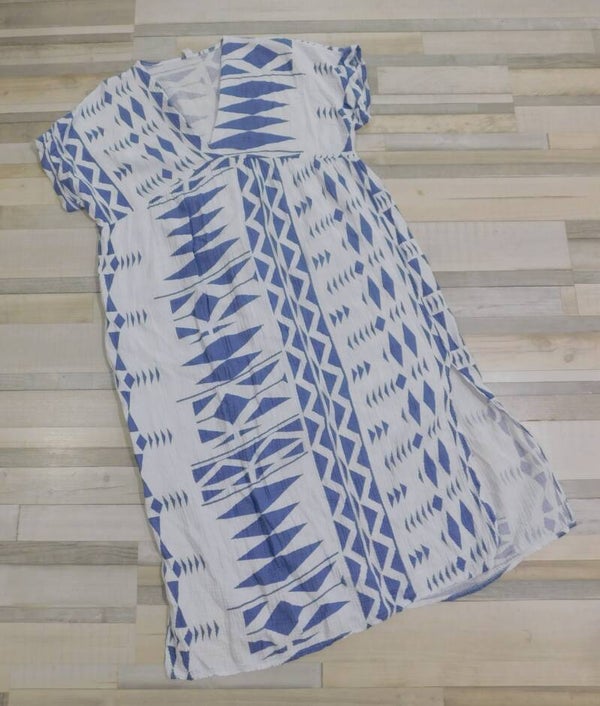 Robe manches courtes, mi-longue gaze de coton, fluide.
