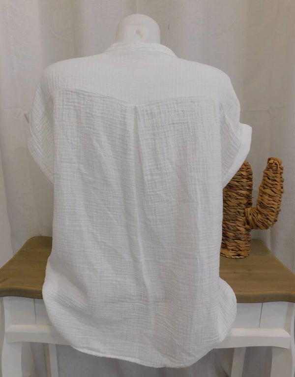 Chemise gaze de coton fleurs brodées - dorée