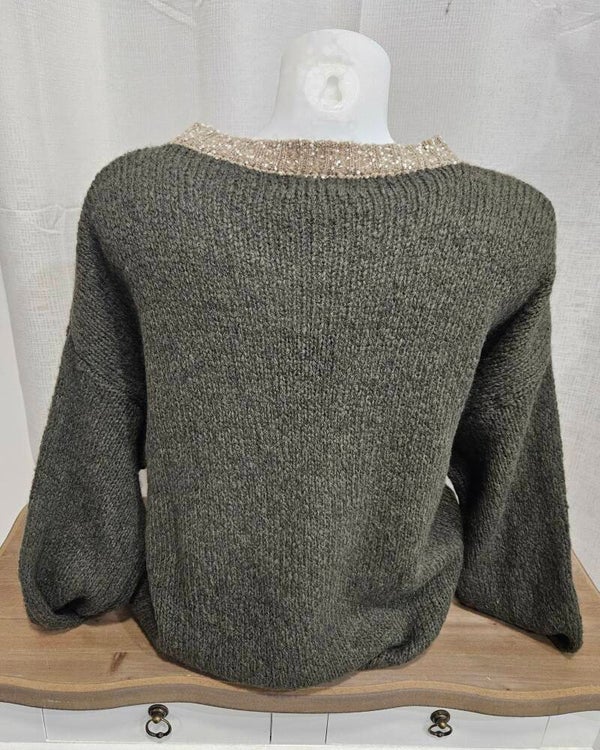 Pull bi-color poche - kaki