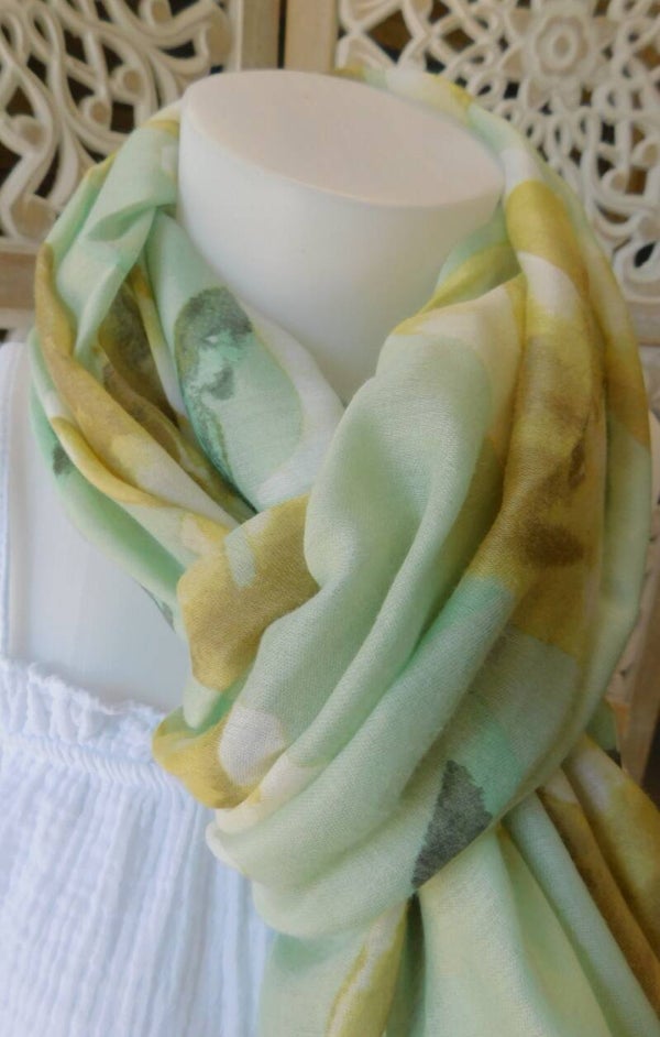 Etole imprimée - motifs verts et beiges.