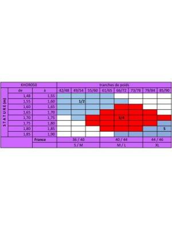 3 tailles disponibles : 1/2 = 36/40 ; 3/4 = 40/44 ; T5 = 44/46